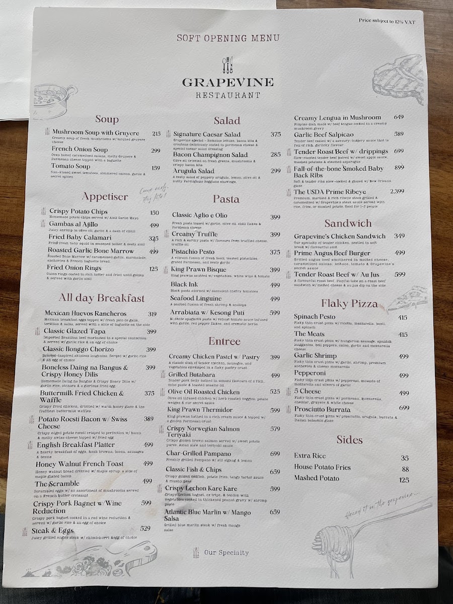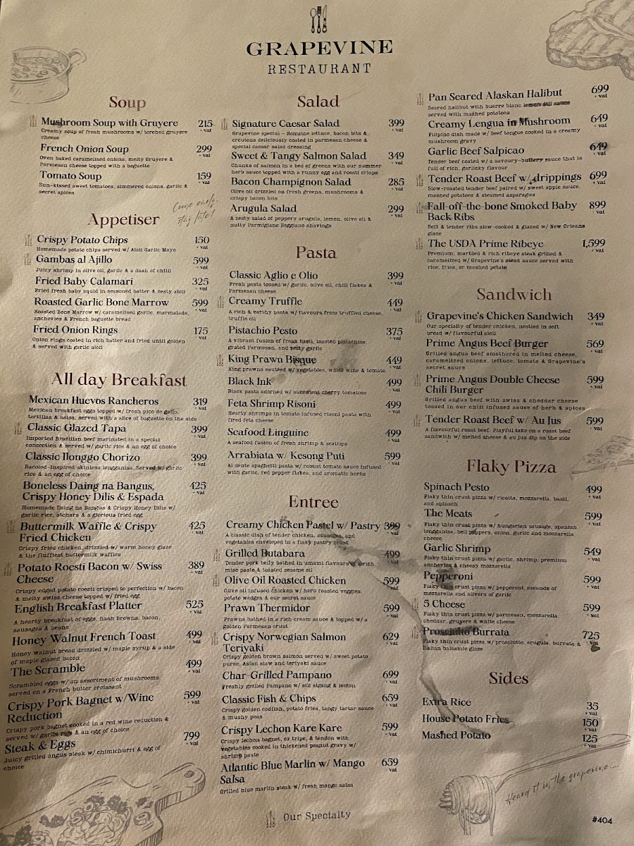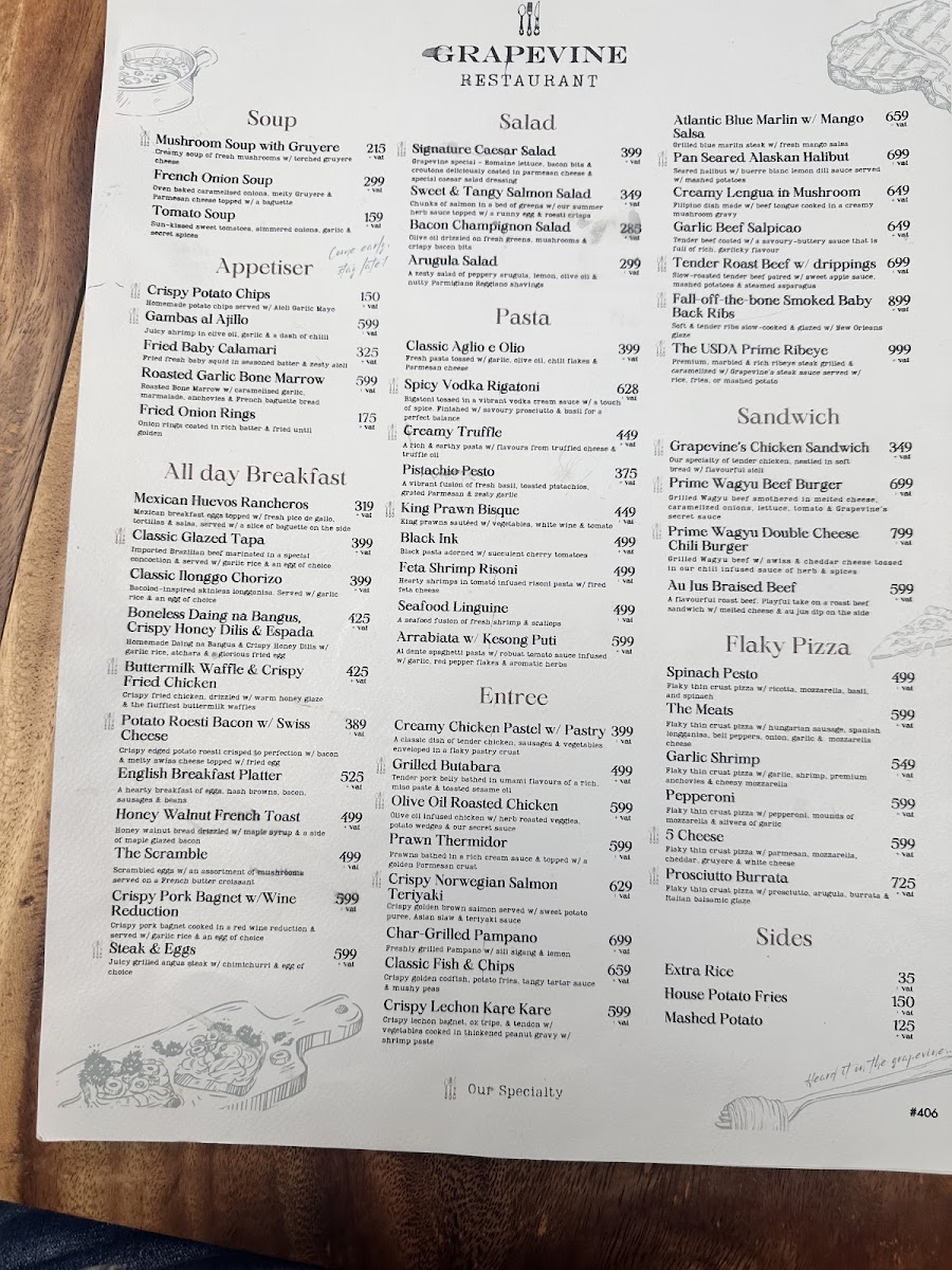 Welcome to Grapevine Restaurant, an exquisite dining experience nestled in Quezon City, Metro Manila. This Western restaurant is a delightful blend of elegance and comfort, reminiscent of the charming cafes in South Korea.